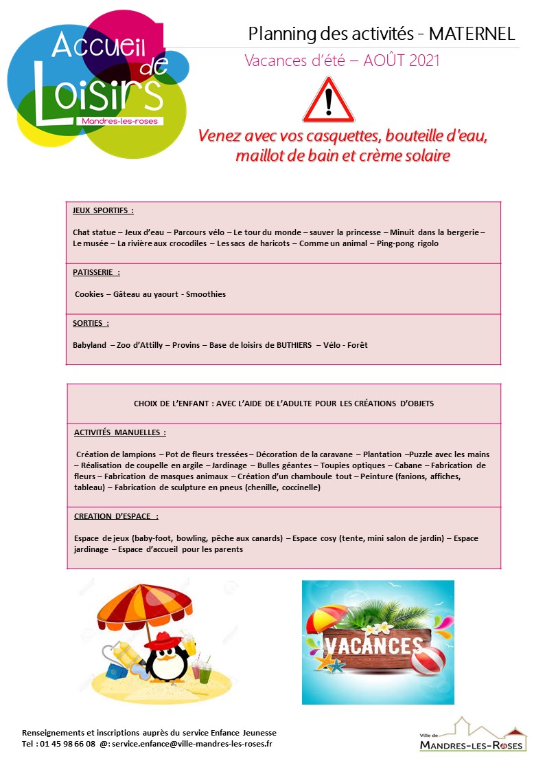 Planning vacances août 2021-maternelle