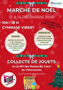 Tout le week-end, une collecte de jouets au profit des Restos du Cœur de Villecresnes sera organisée. Les visiteurs sont invités à apporter les jouets dont ils n’ont plus l’utilité (hors puzzles et peluches) afin de les offrir à des enfants dans le besoin.