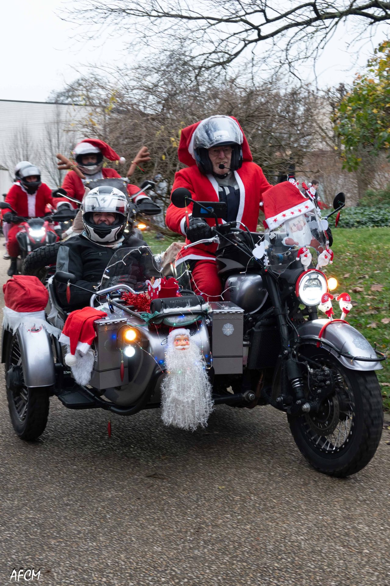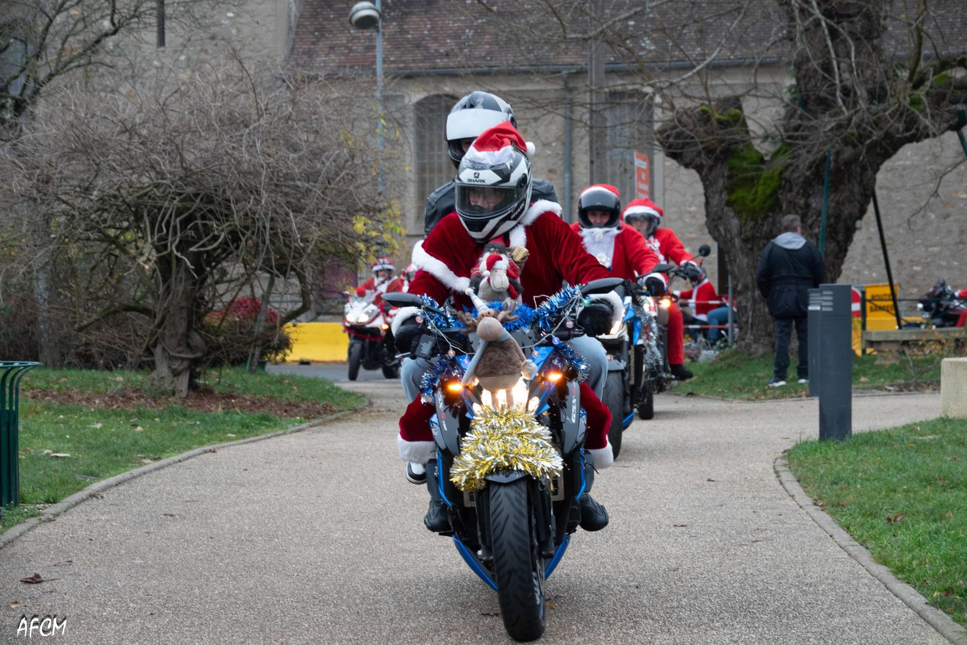 Le défilé des Pères Noël à moto a également enchanté petits et grands, avec distribution de bonbons et chants de Noël résonnant dans le gymnase.