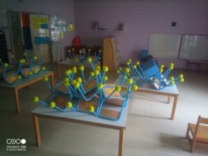 Réparations de certains stores, changement de plusieurs points lumineux, travaux de platerie, modification et renouvellement de certains mobiliers en bois, travaux de plomberie et de chauffage, traçage des jeux dans la cour de l’école maternelle, réparations du sol amortissant des jeux.